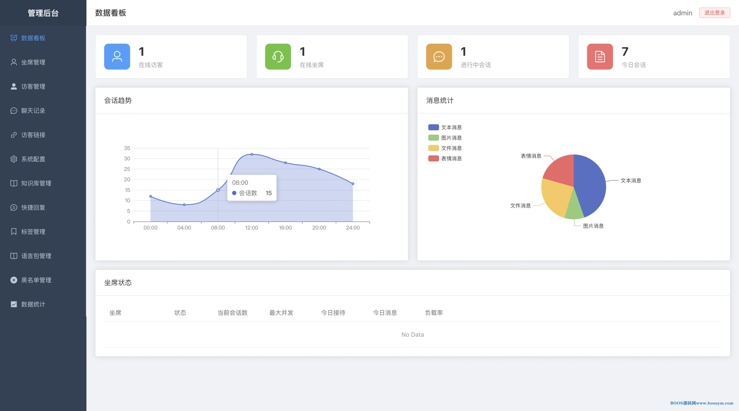 通过实时数据看板与统计分析,掌握客服工作量、访客来源、消息量等指标,