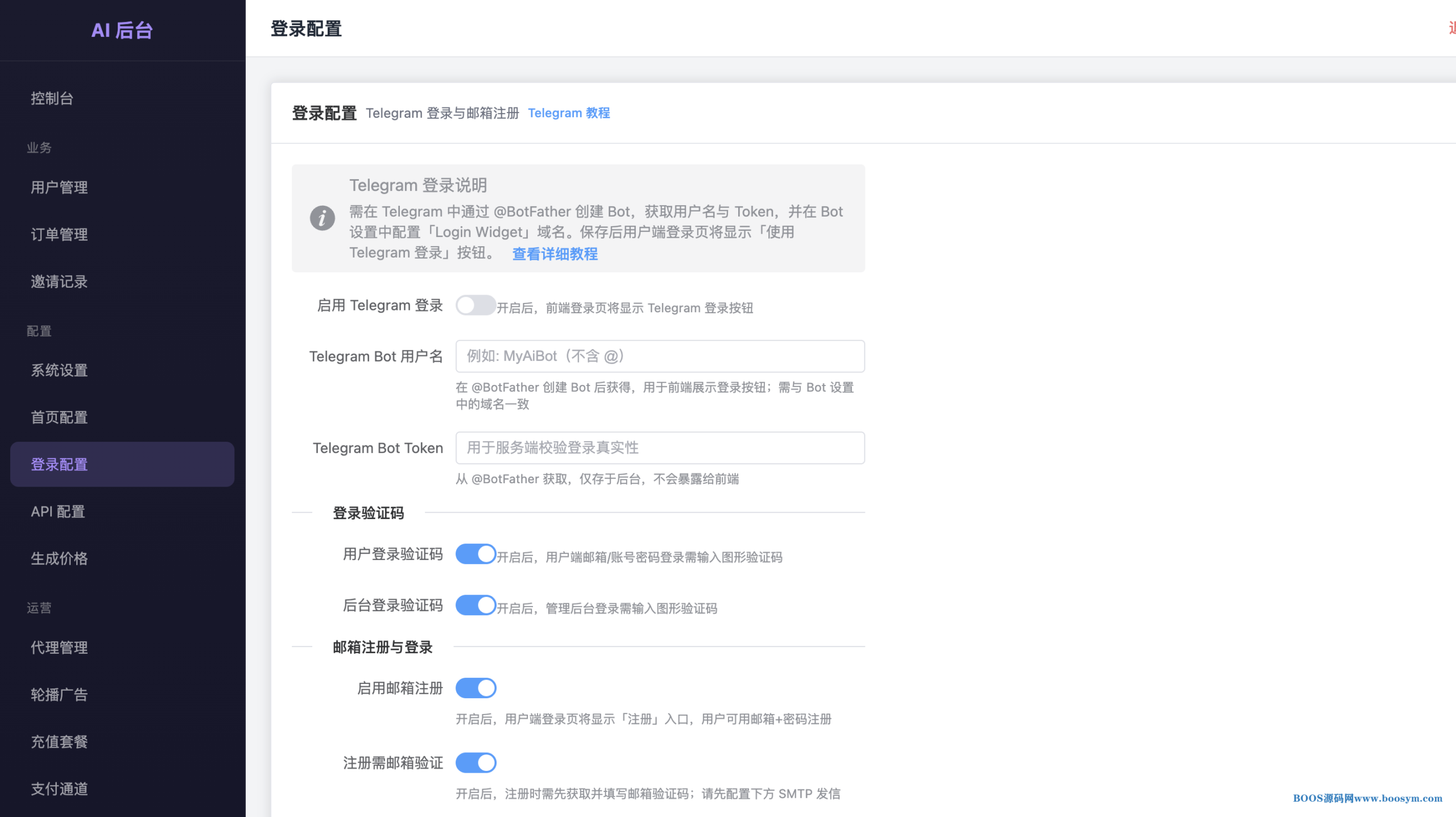 | 系统设置 | 键值配置(注册送次数、邀请奖励等) |